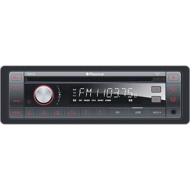 Com o autorrádio VM028 PHONOCAR pode ouvir a sua estação de rádio favorita ou encher o carro com as suas músicas favoritas.
