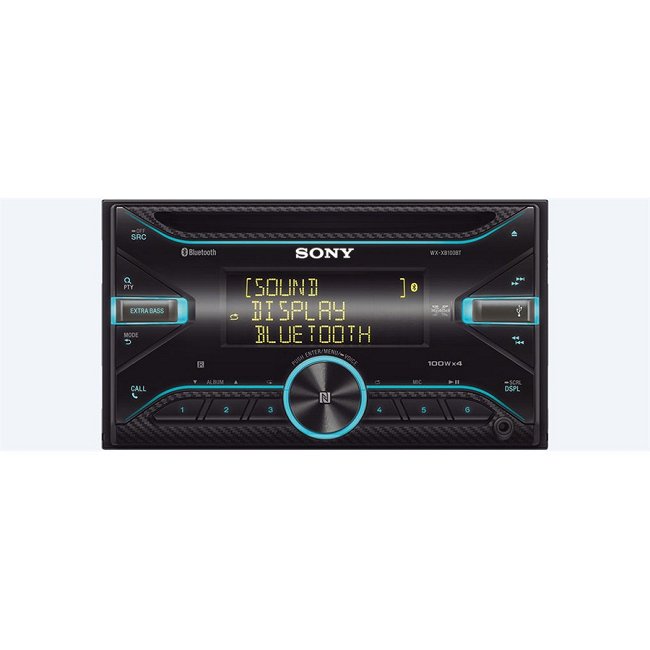 O autorrádio SONY WXXB100BT é um modelo do tamanho do 2DIN, com CD e Bluetooth, entrada USB e entrada auxiliar (AUX). Uma potência de 4x55 Watts com função Extra Bass , que através de um simples toque, irá desfrutar de som dinâmico e um baixo de tirar o fôlego. Iluminação variável, 35000 cores em 2 zonas e um equalizador de 10 bandas. Reproduz os seus arquivos MP3 / WMA / FLAC através de Bluetooth ou NFC e permite que faça ou receba as suas chamadas telefónicas e ouvir música com segurança em modo de mãos-livres. O microfone é externo ao autorrádio para uma melhor captura de voz. Uma função dedicada à função Siri que lhe permitirá interagir com a sua viatura.